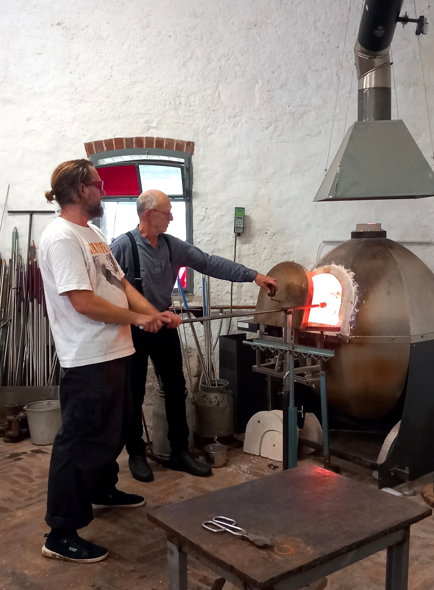 Wir haben es gar nicht mehr geglaubt, aber standen nun doch wieder am Glasschmelzofen. Diesmal nicht bei uns zu Hause, sondern bei dem bekannten und fantastischen Glaskünstler und Glasmacher Torsten Rötzsch, der in den letzten Jahren oft bei uns gearbeitet hat. Das hat gut funktioniert und wir haben wirklich gute Ergebnisse mitbringen können. Unsere Gesundheitsprobleme ignorieren wir zur Zeit mit großem Erfolg.