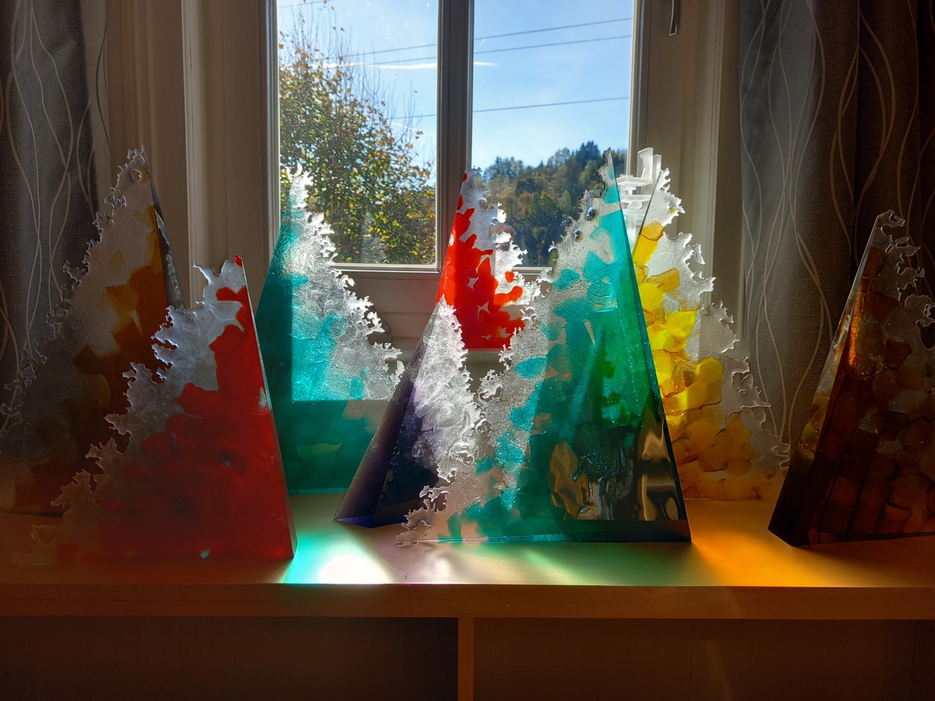 mehrfarbige Folien, teils bemalt aussen aufgeschmolzen,