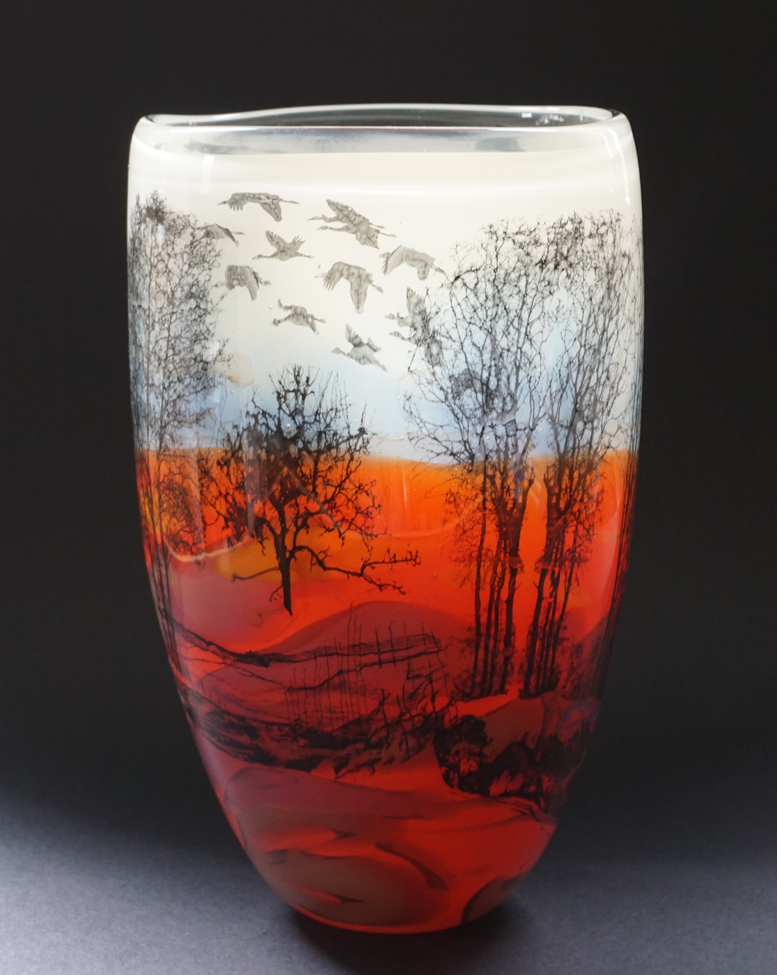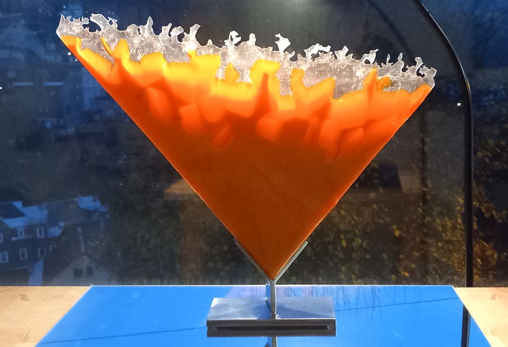 Ulrich hat in den letzten drei Jahren viele Experimente im Fusingofen gemacht. Er stellte fest, dass die Technik sich von der des Glasschmelzes im Studioofen doch stark unterscheidet. Hier spielt der Formbau eine große Rolle, wenn man ein plastisches Ergebnis erzielen will.
